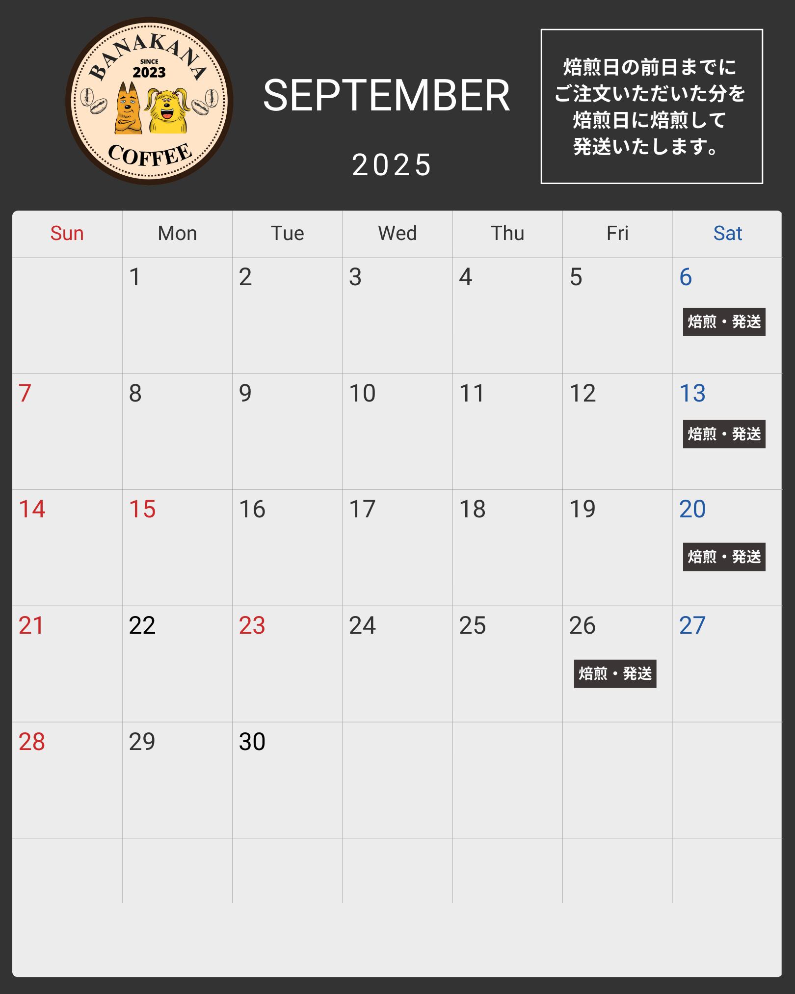 3月の焙煎予定日はこちら