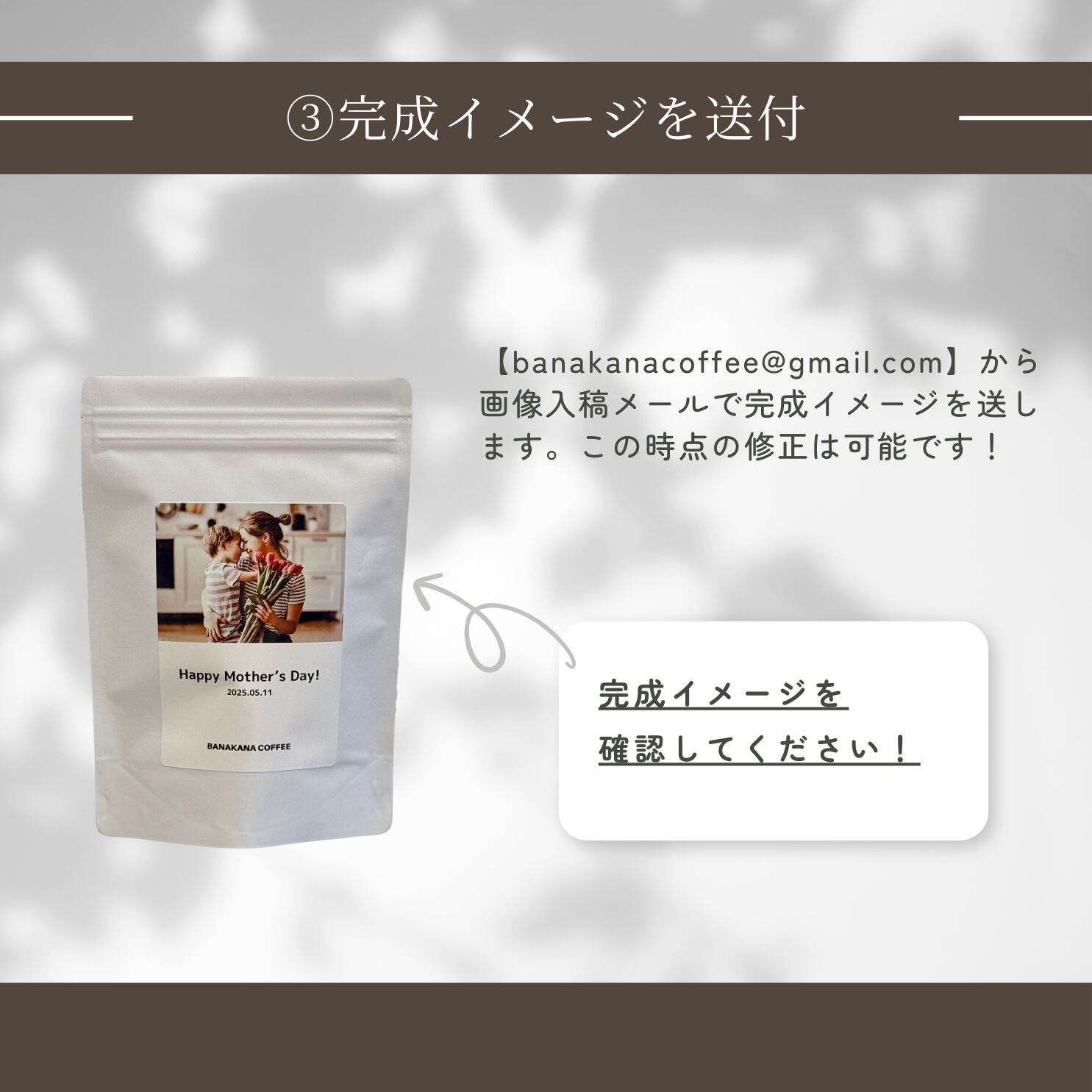 お気に入りの写真や、オリジナルイラストなどを使ってコーヒーパッケージを作成いたします。